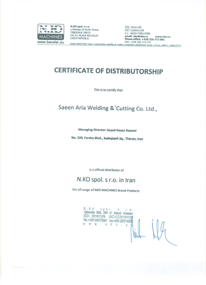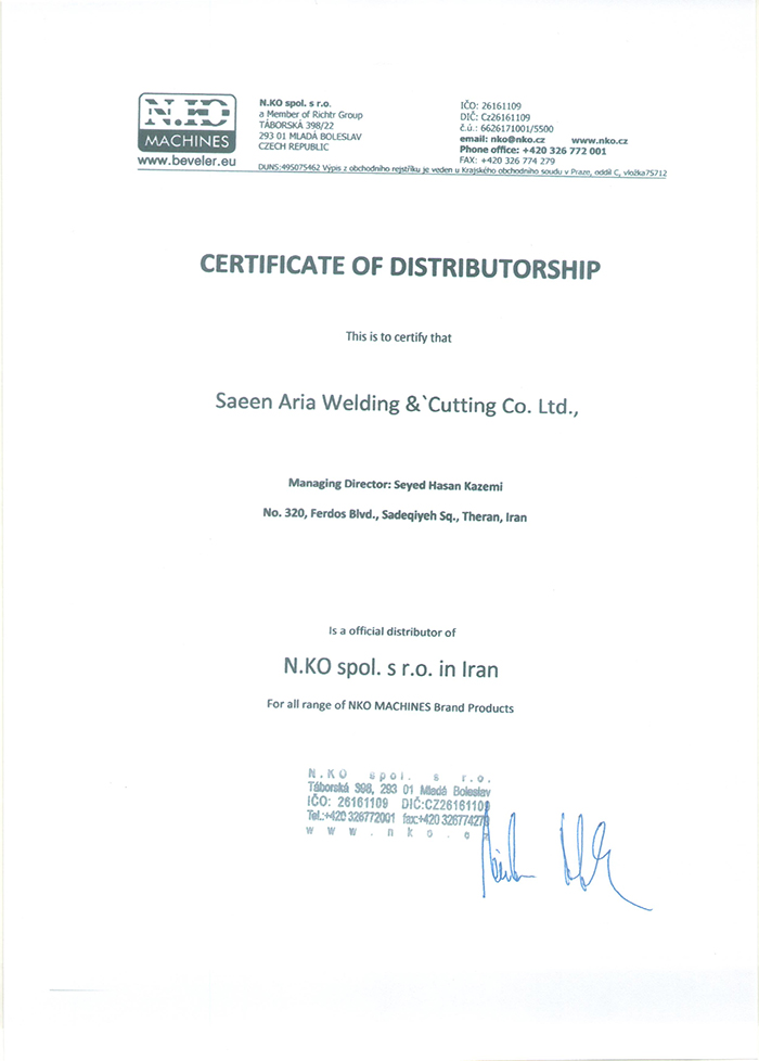 گواهینامه و مجوزهای صائین آریا
