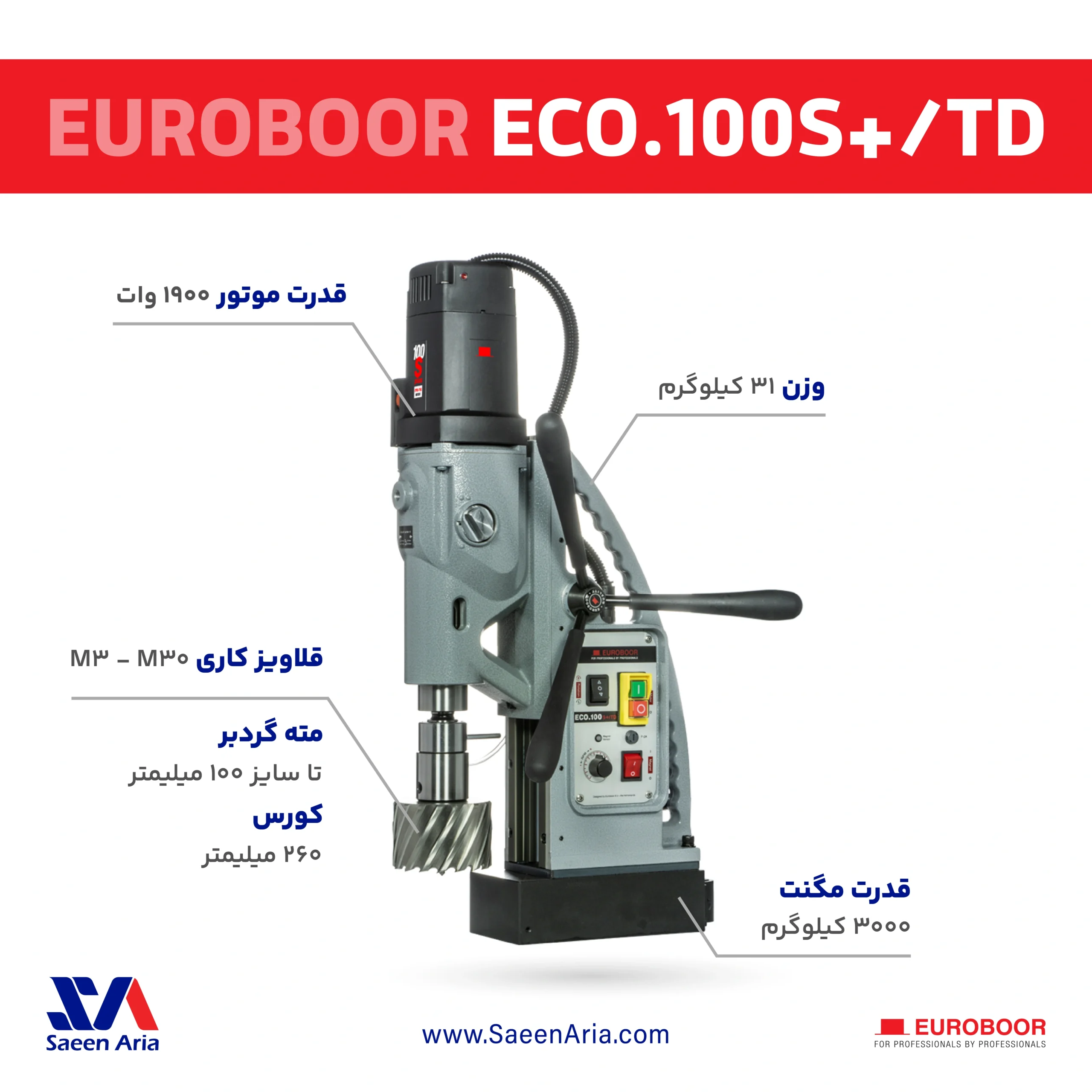 دریل مگنت ECO.100S+/TD یکی از خارقالعادهترین دریلهای قابل حمل بازار و همچنین یکی از بهترین محصولات عرضه شده توسط شرکت یوروبور هلند است که دارای موتوری به قدرت 1900 وات و وزن 31 کیلوگرم، در دسته قدرتمندترین دریلهای مگنت یوروبور محسوب میشود.